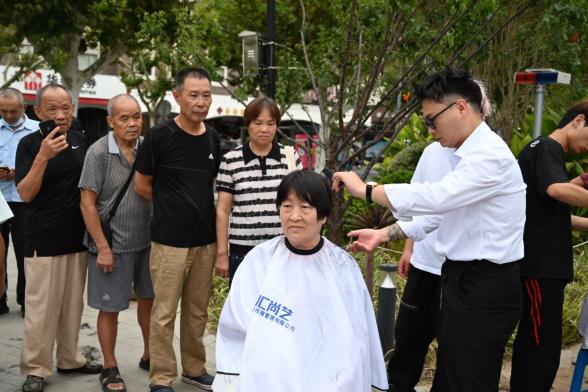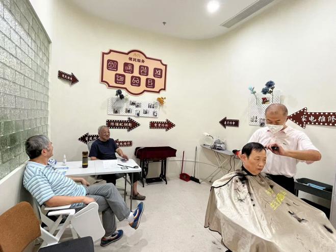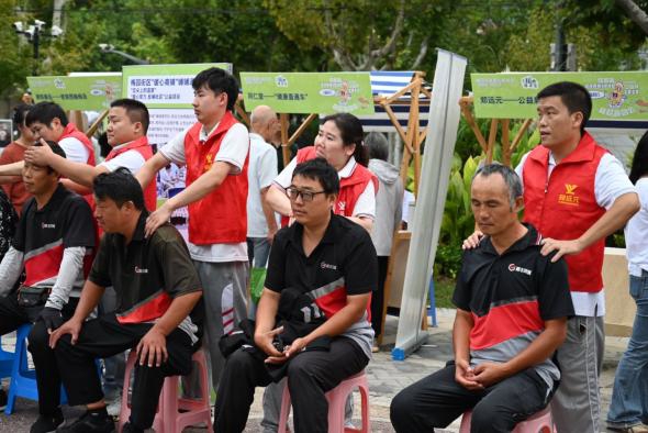 在梅园街区,依托常态化运营的“铺铺通”项目,多家爱心商户持续为外卖员、快递员等新就业群体及老年人提供公益服务。链家开展“防跌倒”轻量化宣传,为老年居民细致讲解防跌倒技巧,并现场发放防撞角、荧光贴等实用伴手礼;郑远元的公益肩颈护理点前排起长队,不少外卖小哥利用配送间隙前来体验按摩推拿;同仁堂开展“健康直通车”公益测血糖服务;汇尚艺的“剪暖街头”提供公益义剪服务。这些并非一次性服务,而是梅园网格“暖心商铺”每周坚持的常态化公益内容,切实将商户资源转化为社区可持续的服务力量。