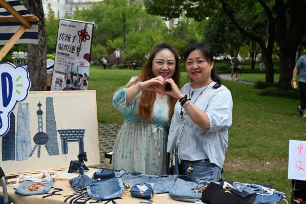 陆家嘴“寻珠计划”在聚明心社区规划与营造中心的全程赋能支持下培育了多个社区达人项目。“牛仔循环·永续社区”项目由荣成小区达人肖静带领,现场不仅展示了将旧牛仔裤改造而成的背包、收纳袋等实用好物,更有多个家庭共同用牛仔布片拼出陆家嘴地标画作和精致美味的牛仔蛋糕。项目已培养出一批社区手工达人,并制作《牛仔改造手册》,切实推动旧物循环与低碳生活。