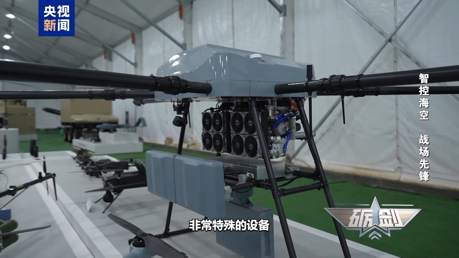在无人装备实装演示中,“飞蛙”“飞隼”等多种类型的轻小型无人机组成编队,各司其职,共同完成任务,对敌方的重要目标进行打击。